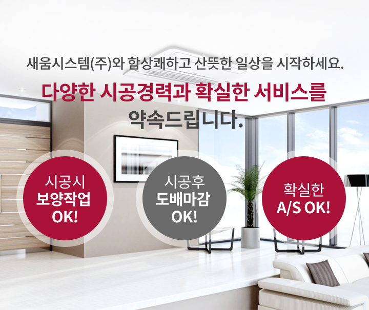 (주)새움시스템을 선택하면 더욱더 상쾌한 공간이 될 것을 약속드립니다.