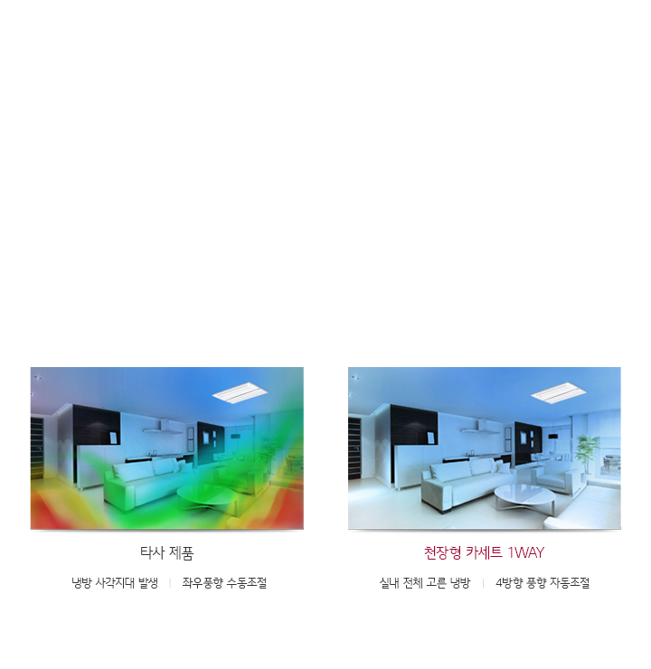타사의 경우 상/하 풍향만 자동으로 조절되어 냉방 사각지대가 발생할 수 있습니다.